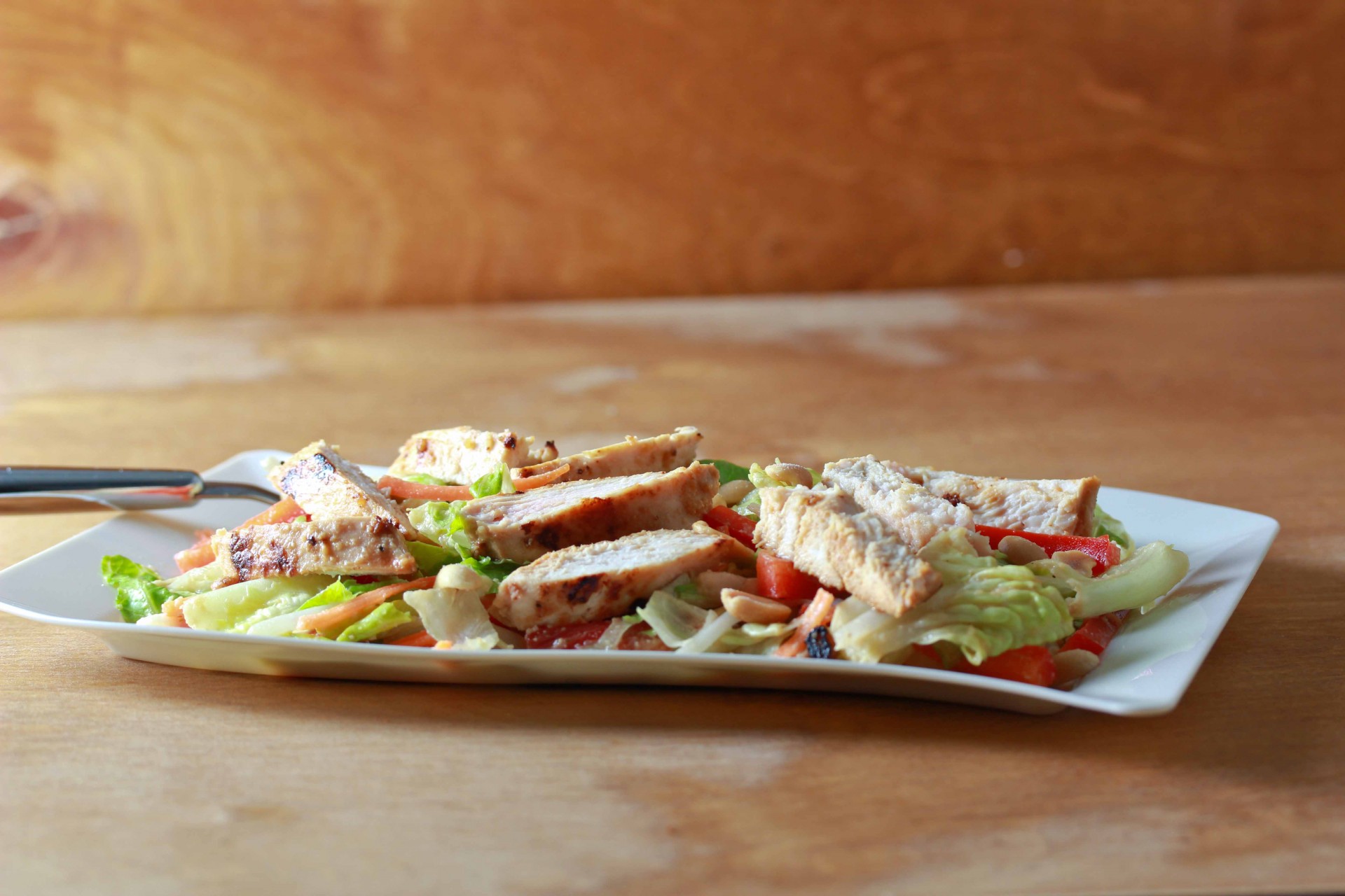 Note: for a fancier presentation, slice the chicken and serve on top of the salad.