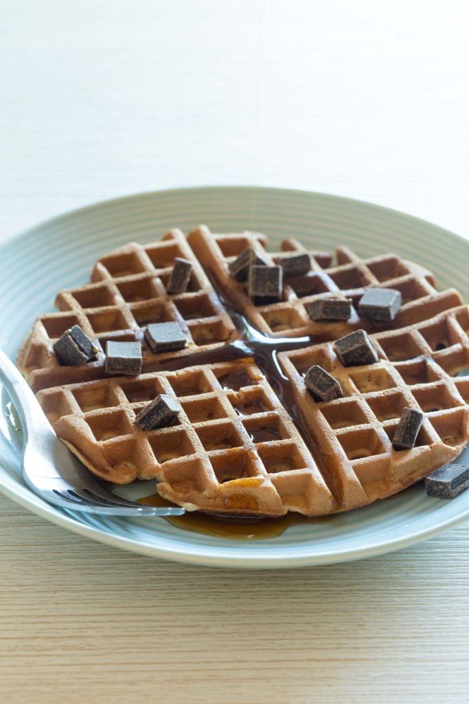 - Serve immediately, with maple syrup and chocolate chunks, if desired.